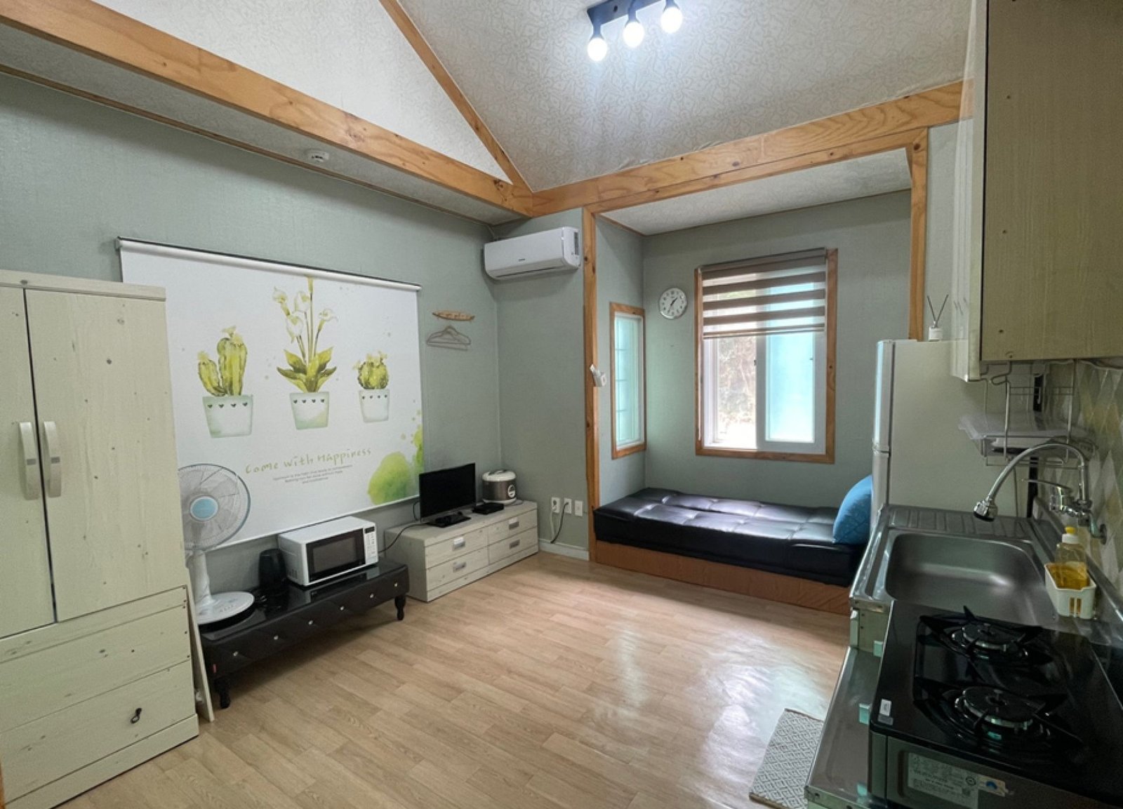 - 시설 : TV, 에어컨, 냉장고, 선풍기, 가스렌지, 드라이기, 취사도구 일체, 전기밥솥, 전자레인지